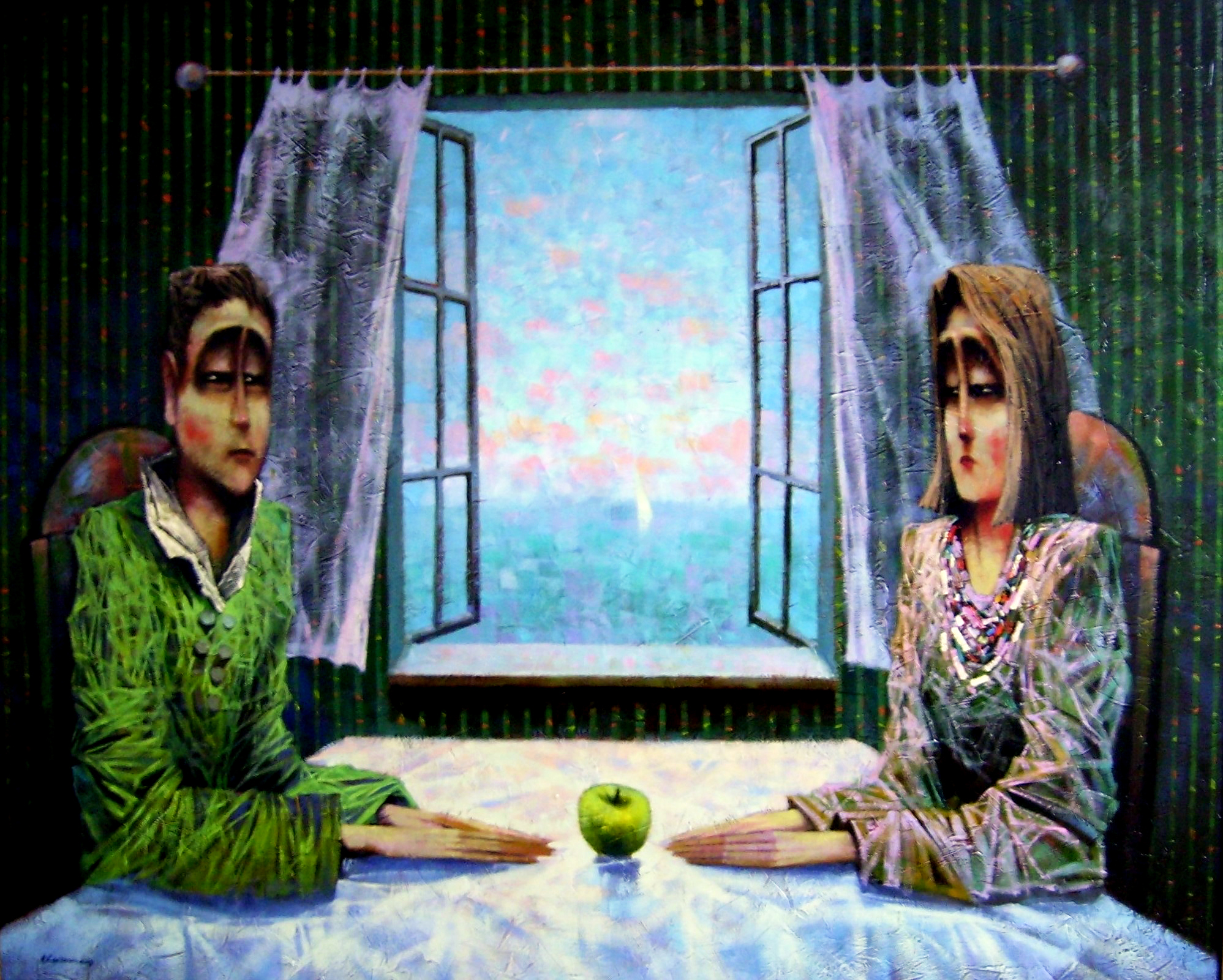 Tekanti pilnatis 55×200 cm, aliejus, drobė, 2013m. (parduotas) “Rising moon” 55x200cm, oil, canvas, 2013 (sold)