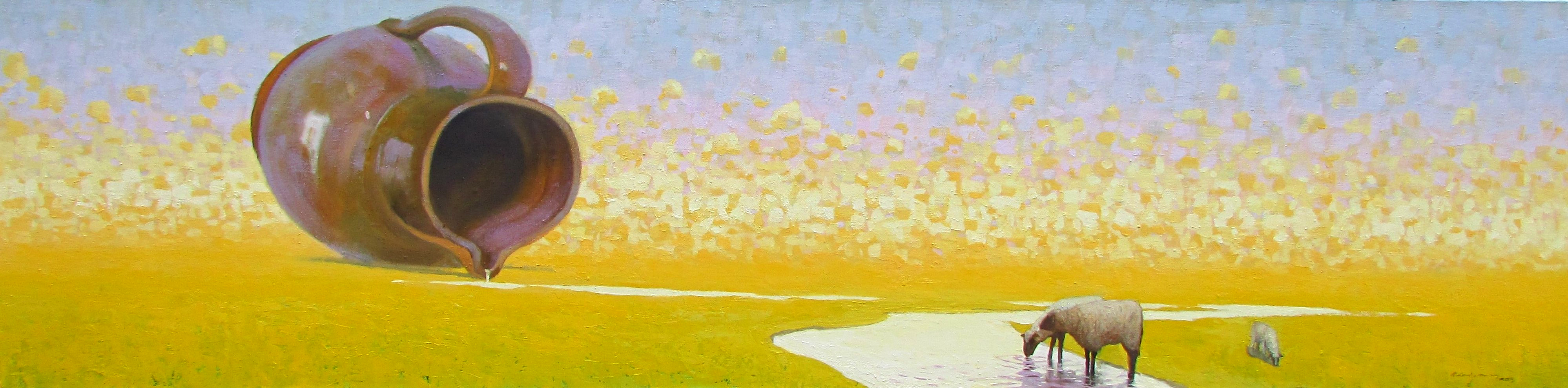 50×200 cm, aliejus, drobė, 2015m. “Overturn jug” 50x200m, oil, canvas, 2015 (sold)